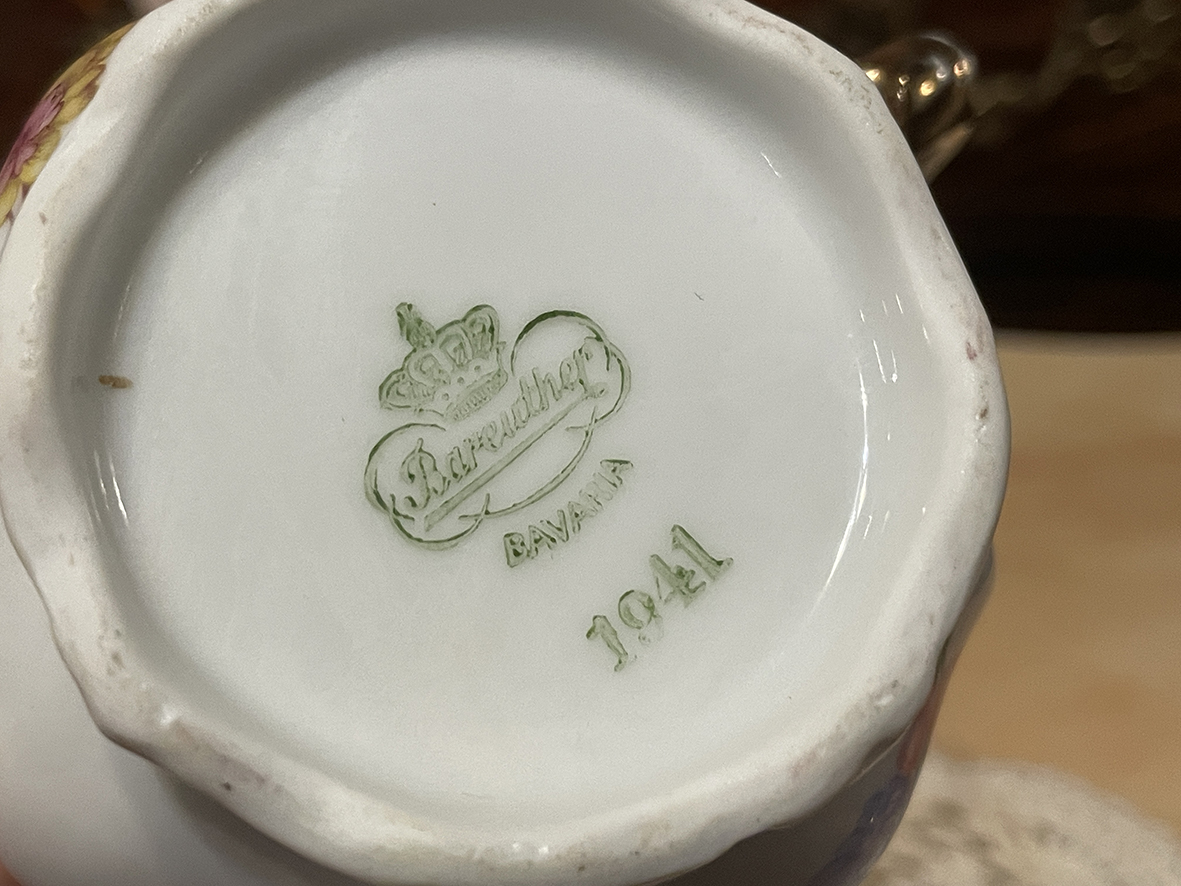 #德國古董瓷器 #巴伐利亞瓷 #手繪花卉 #描金奶壺 #歐洲古董 #古典家飾 #AntiquePorcelain #BavariaChina #GoldGildedPitcher #VintageMilkJug #GermanAntique #FloralPorcelain #EuropeanCollectible #BarendsenBavaria #1940sCeramics