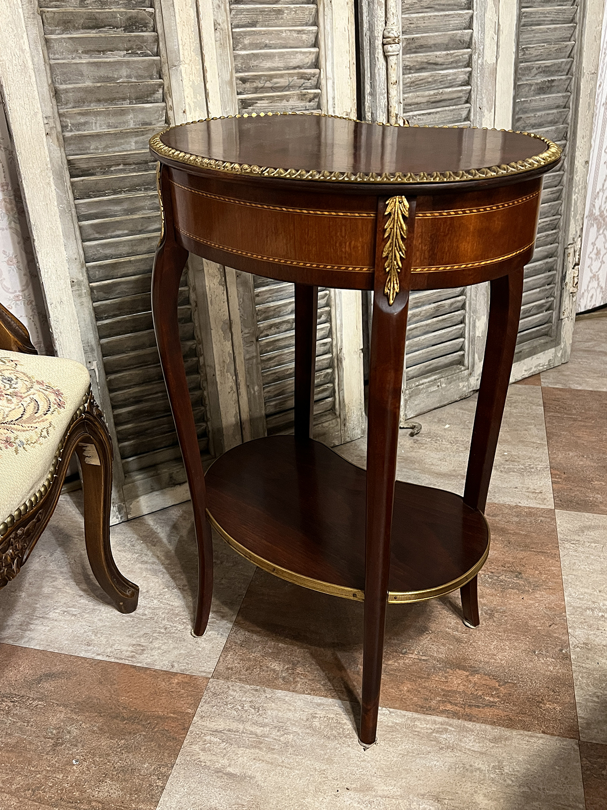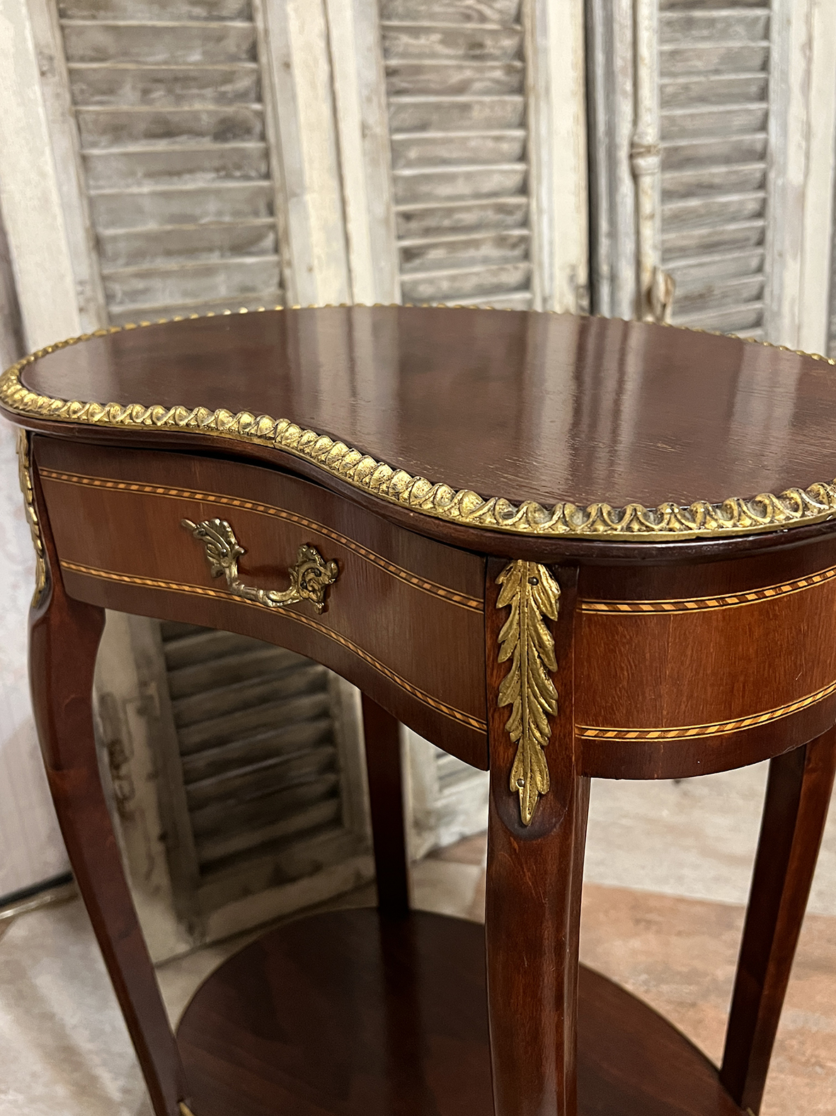 #法國古董桌 #LouisXVI風格 #弧形小桌 #新古典工藝 #黃銅飾件 #桃花心木家具 #美背設計 #古典邊桌 #法式小家具 #書房擺設