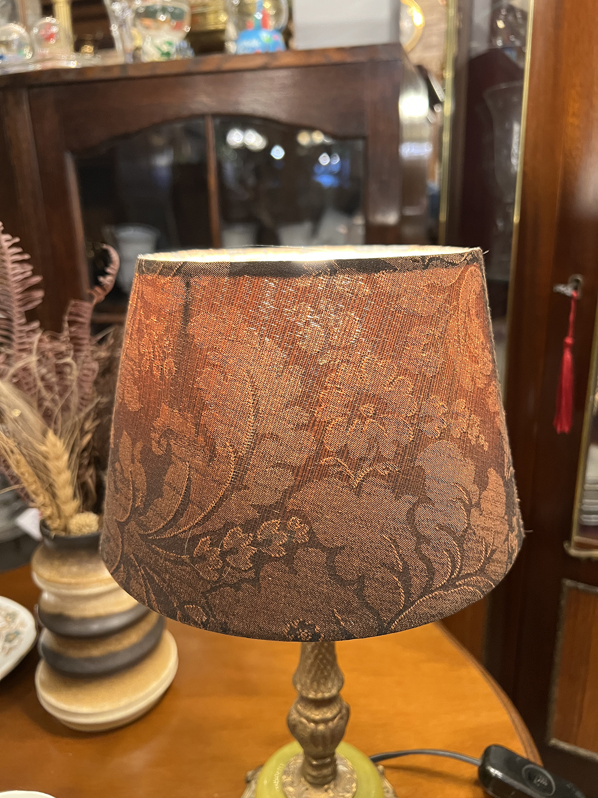 | 材質 | 黃銅浮雕、綠色瑪瑙、緹花布燈罩 |
