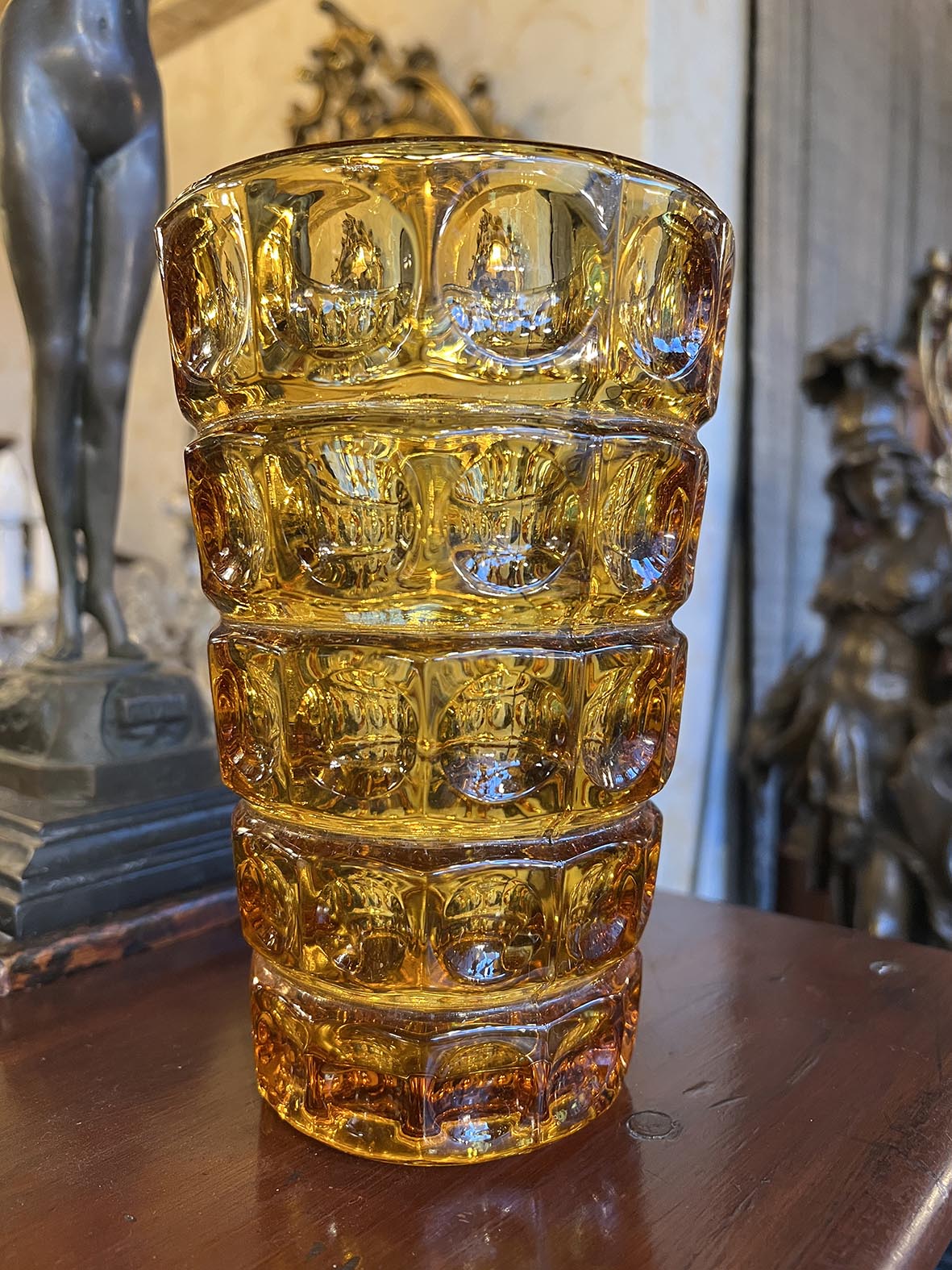 #ItalianGlass #AmberArtGlass #VintageVase #OpticDesign #MidcenturyGlass #HomeDecor #GlassArt #InteriorStyling #EuropeanVintage #CollectibleGlass