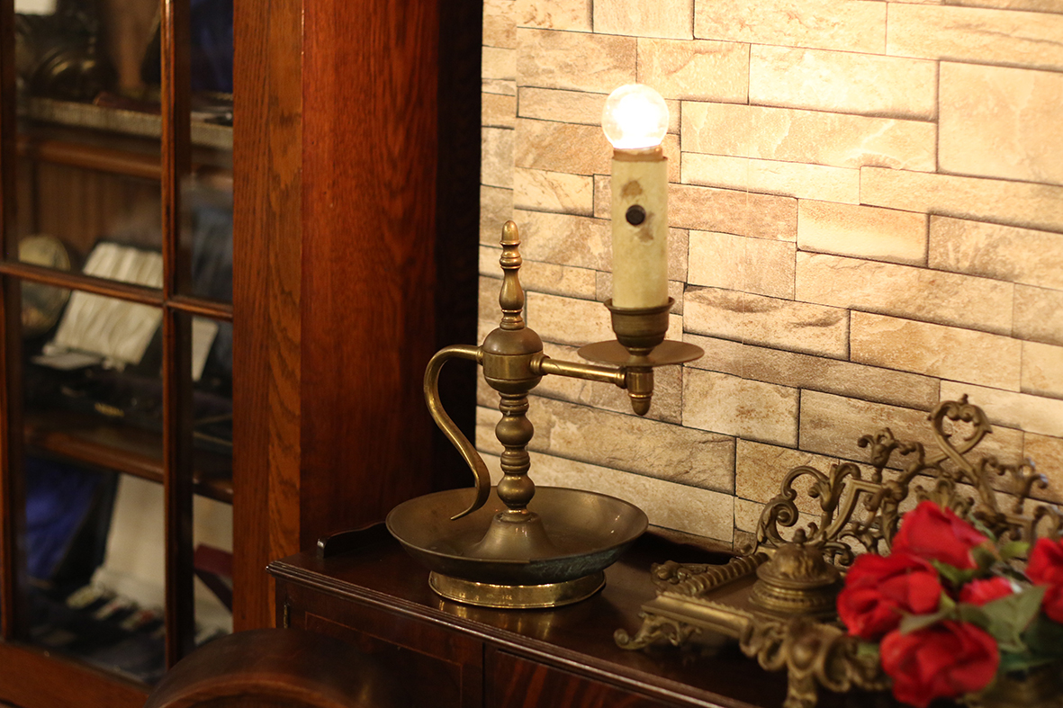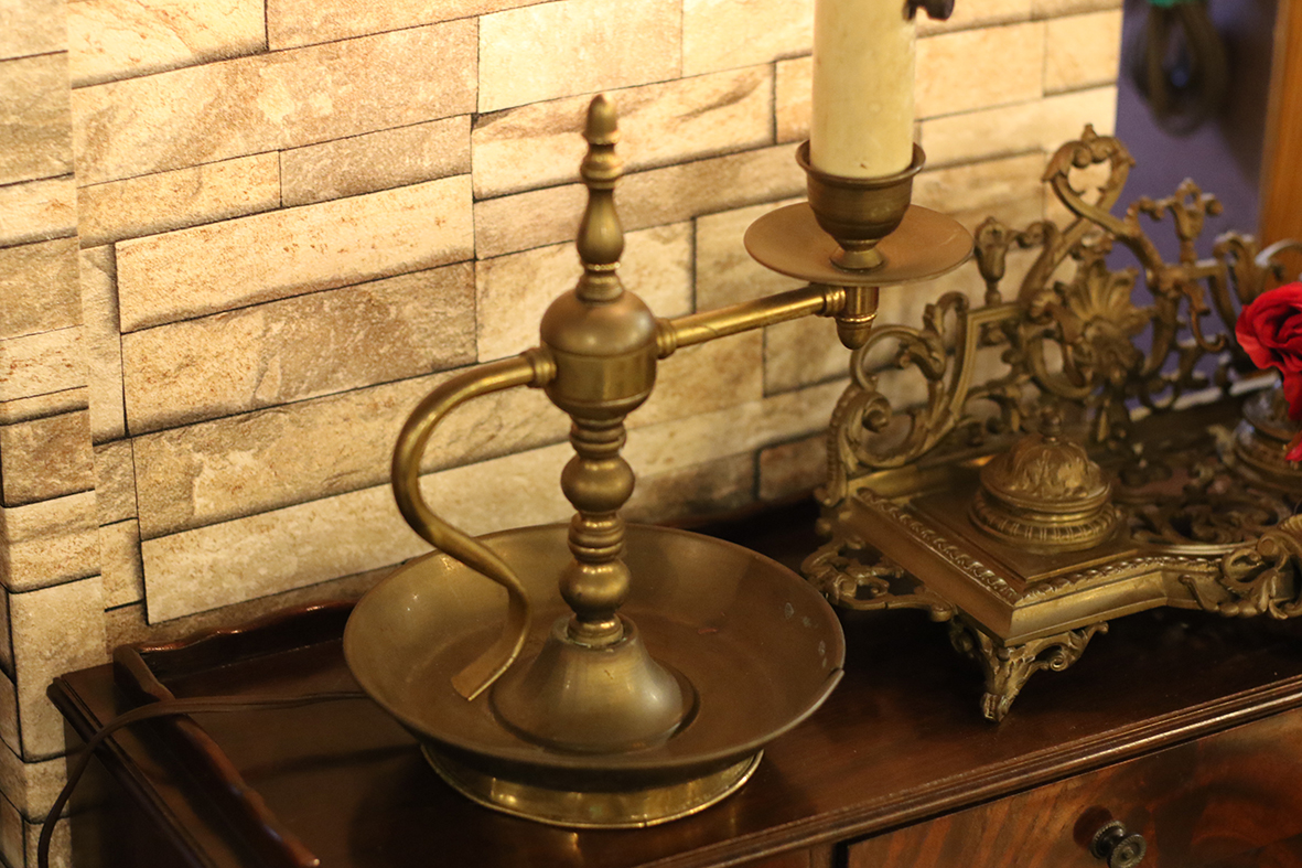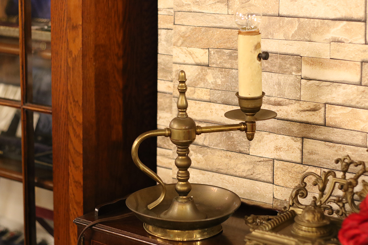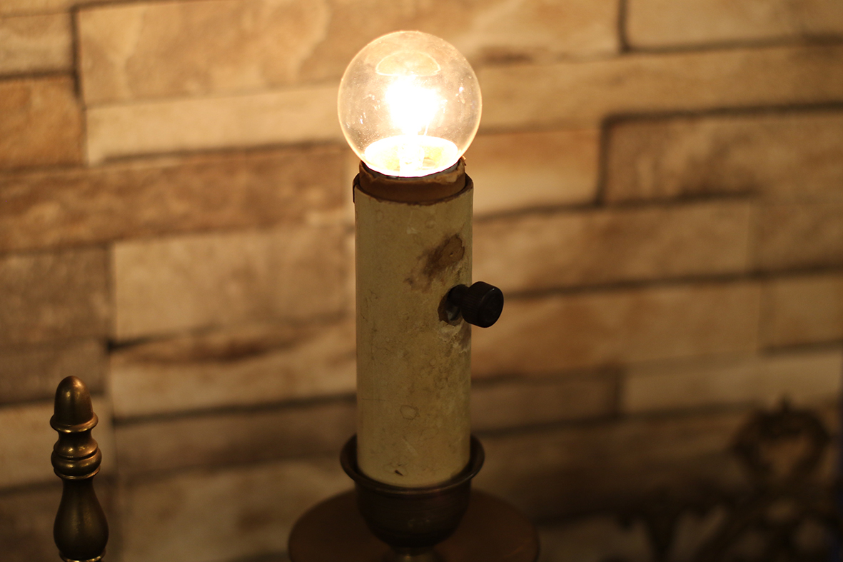 這件來自法國的古董檯燈,以古董燭台改裝為電燈使用。