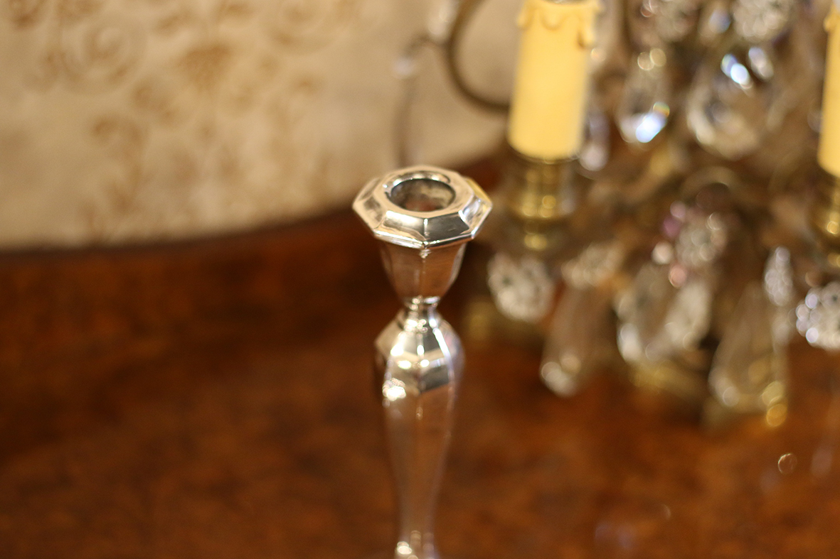這對來自法國的古董燭台,以稀有的白銅打造而成,質地沉重,手感厚實,屬於極少見的收藏材質。