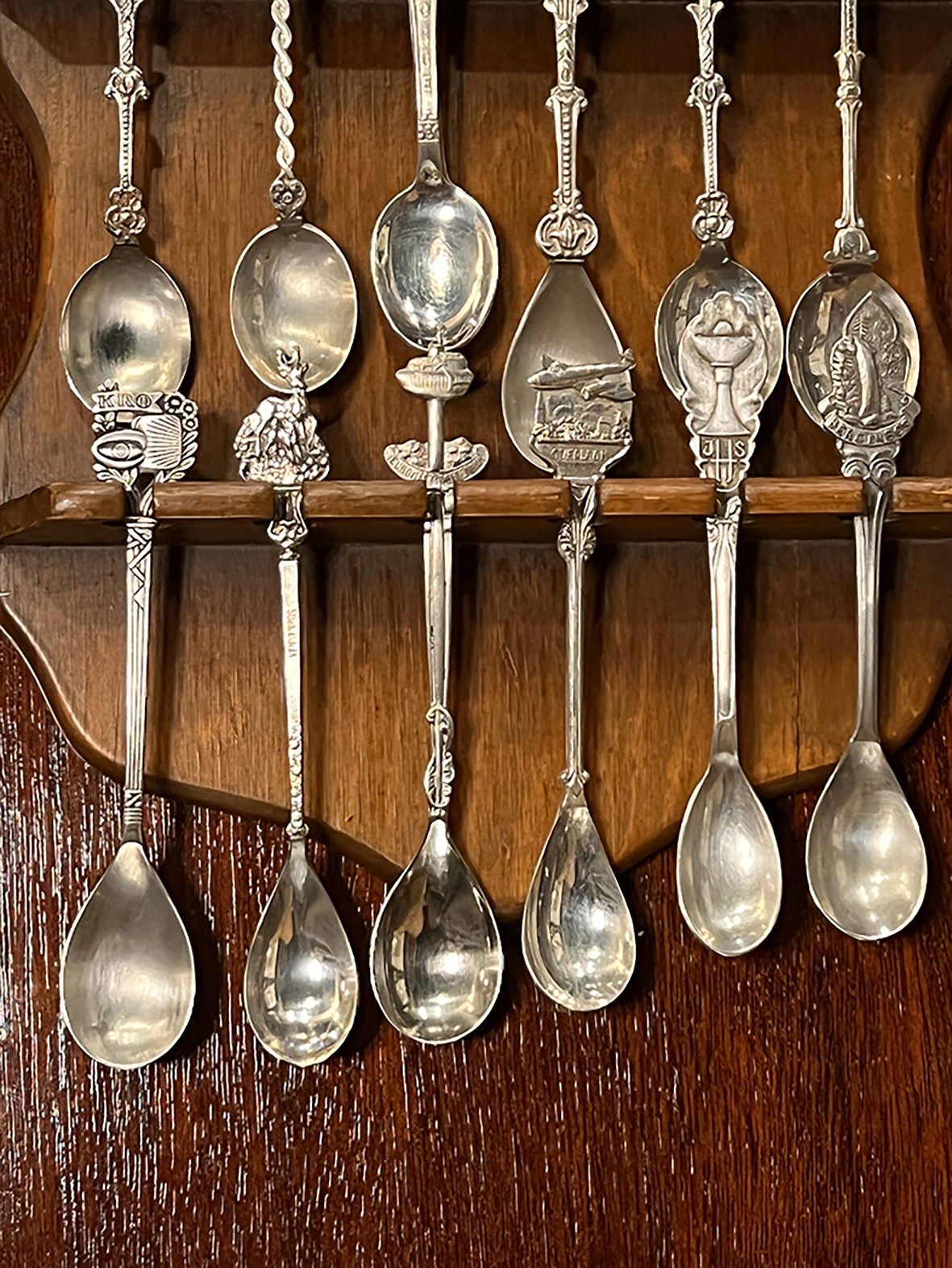 #紀念匙收藏 #德國手工木作 #歐洲紀念品 #旅行收藏 #橡木收納架 #古董匙 #選物店風格 #vintagecollection #souvenirspoons #travelkeepsake