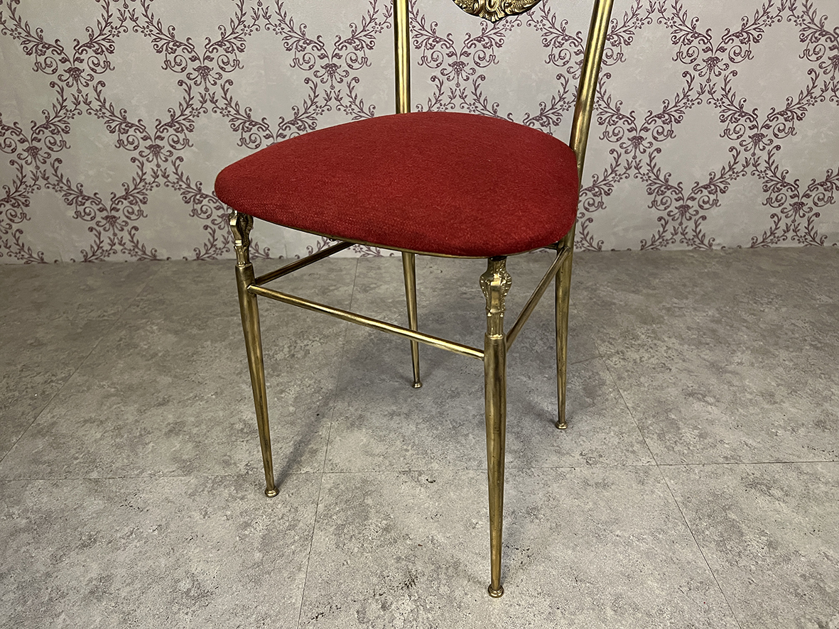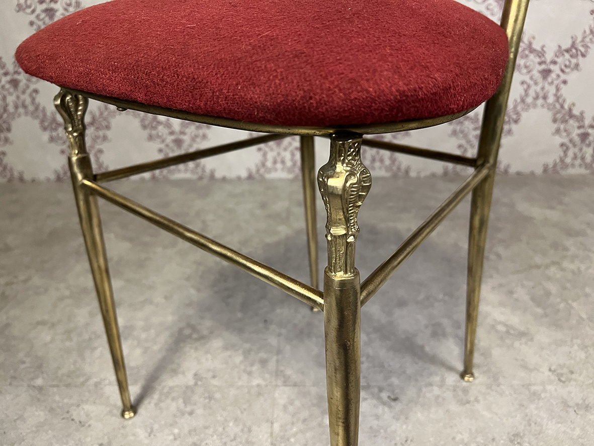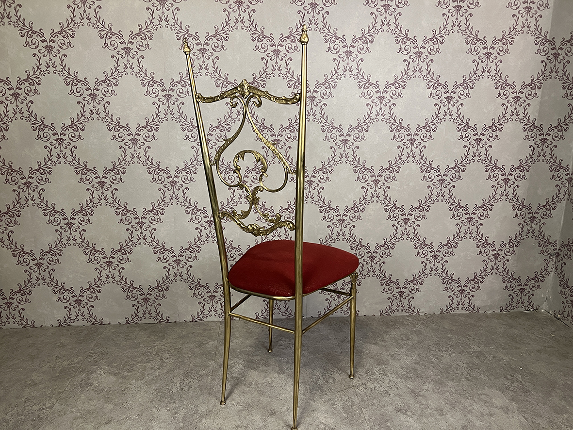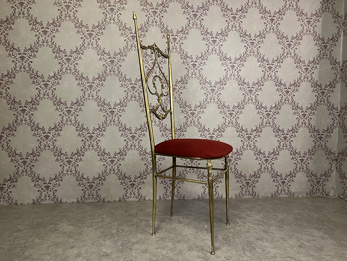 暗紅色布料坐墊擁有濃烈的宮廷風情,亦與黃銅材質產生高貴而熱情的對比。