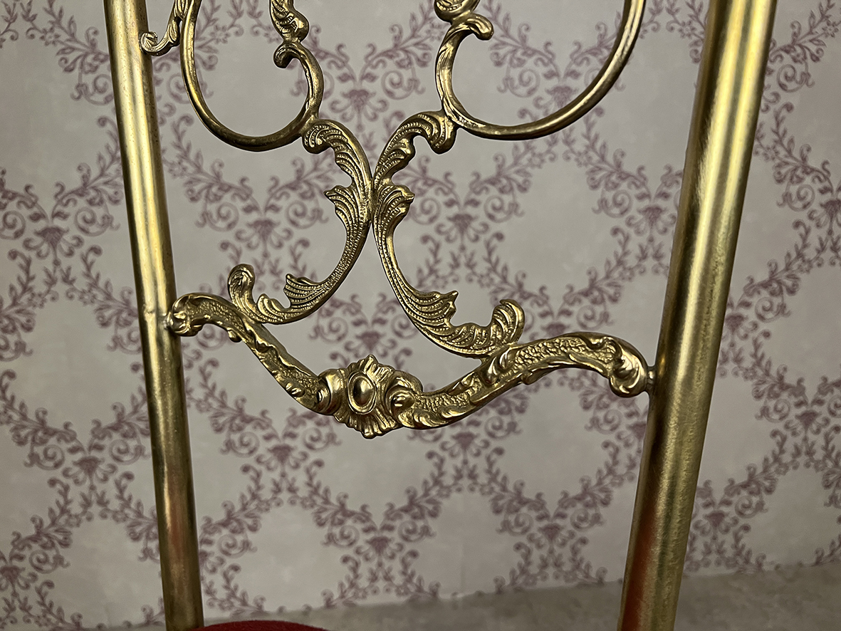 | 材質 | 黃銅主體結構,浮雕卷草紋飾件,宮廷布面坐墊 |