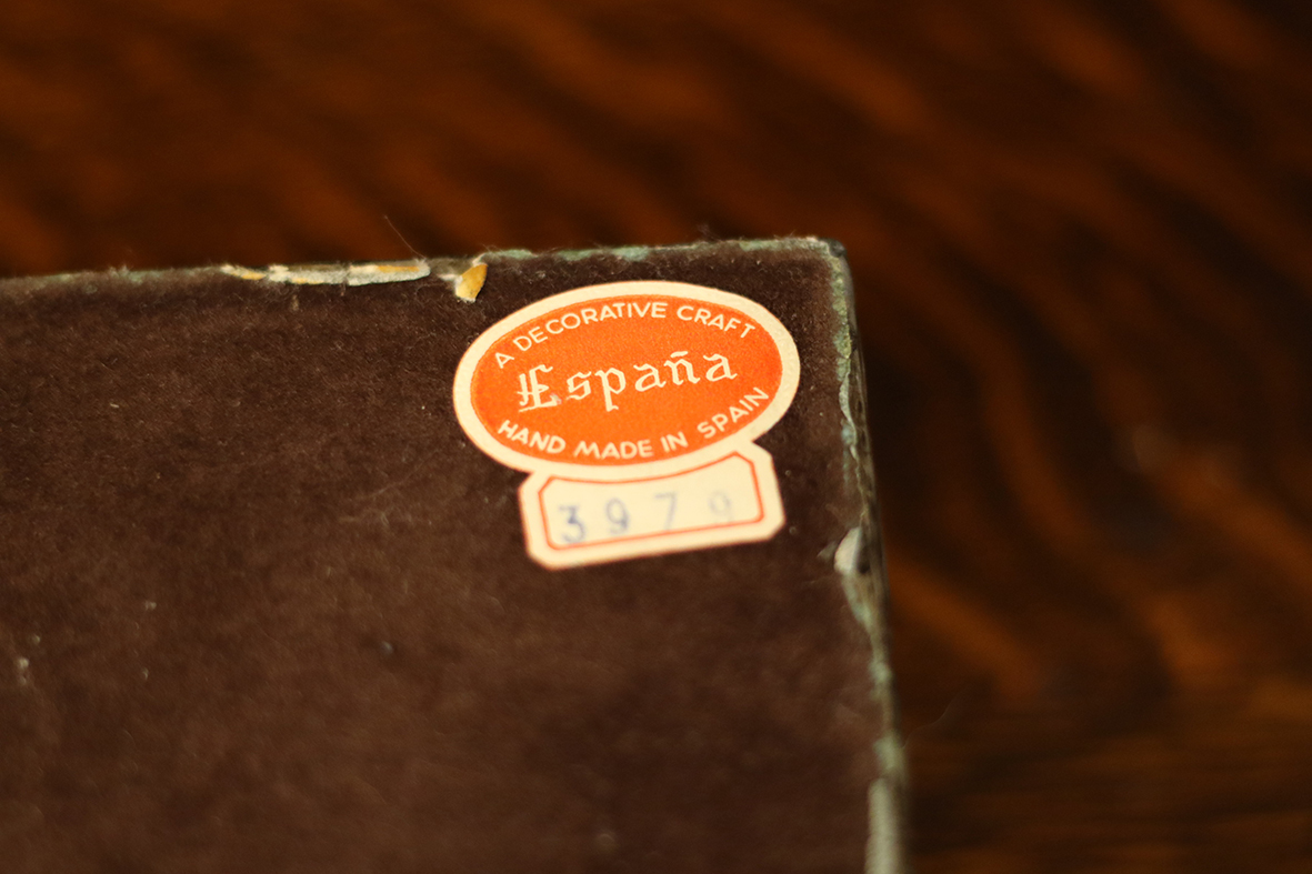 盒底仍保留原貼紙,標示「España Hand Made in Spain」,代表其手工製作與來源。