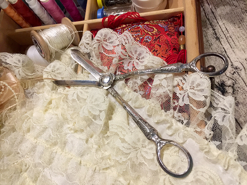 此類剪刀於19世紀末至20世紀初用於貴族家庭與高級裁縫室中,作為剪裁蕾絲、刺繡線或信件開封之用,常被貴族女性納入梳妝檯或縫紉套組中,象徵優雅生活品味。
