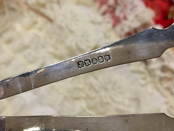 握柄邊緣銘刻可見謝菲爾德銀器製作標記,確認其鍍銀工藝,以優雅細節與裝飾藝術價值著稱。