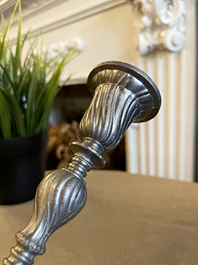 整體比例優雅,金屬光澤帶著舊件特有的霧銀色調,不刺眼、不張揚,特別適合營造歐洲家居中溫暖、靜謐的光影氛圍。