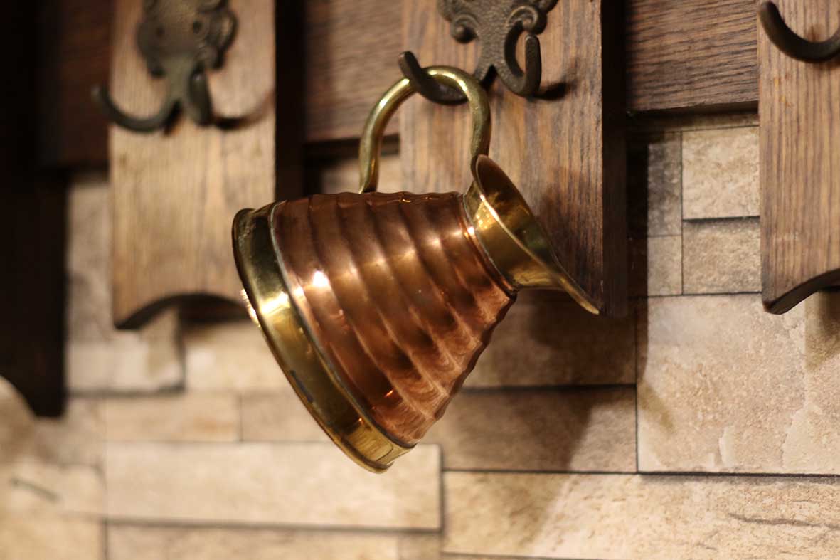 ・紅銅壺身,搭配黃銅口沿、把手與底座