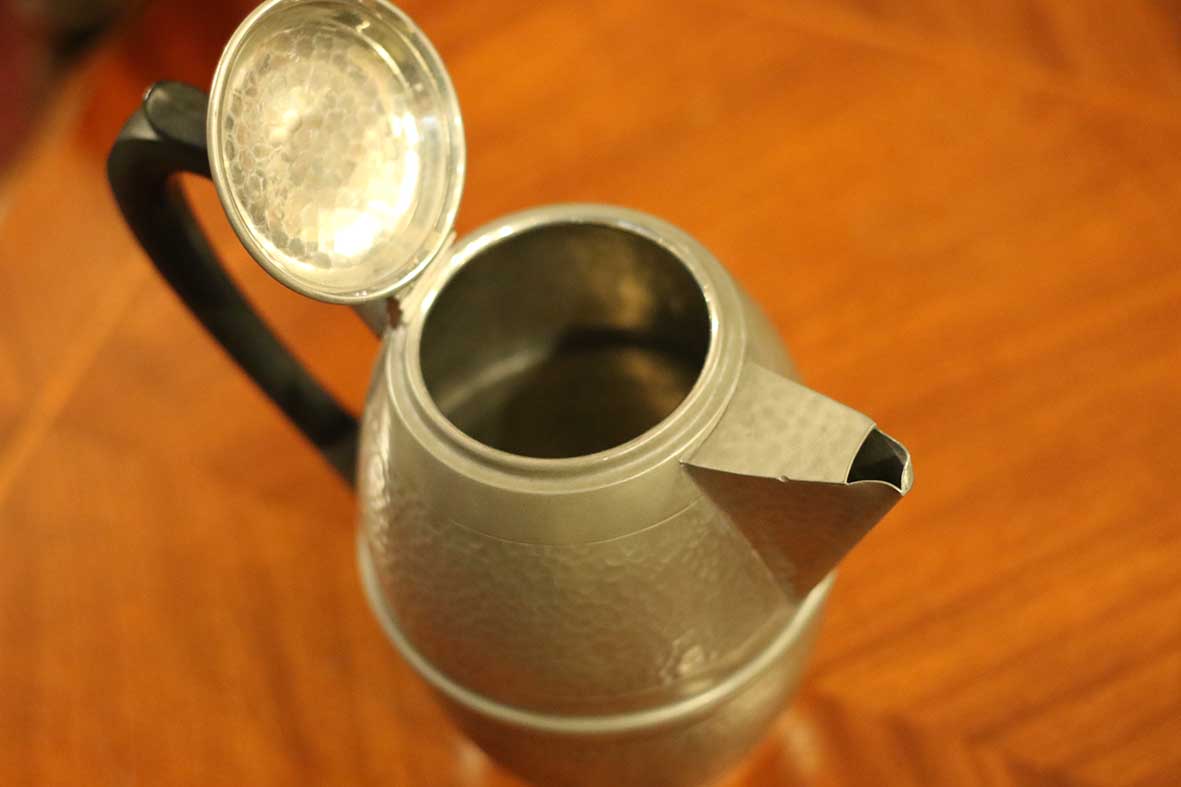🔹 狀況:無飲用使用痕跡,僅見純錫自然小凹痕;壺內乾淨,可正常使用