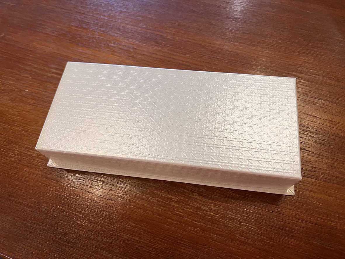 整組附原裝 白色浮雕紋理硬盒 與透明蓋,內襯緞面布料,質感典雅,十分適合作為禮品或收藏。