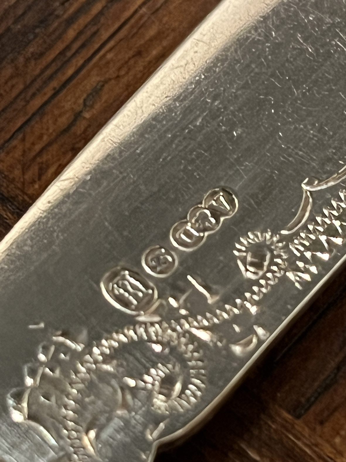 🔸 刀刃上可見完整的 英國銀器工坊標記(EPNS / 英製鍍銀)。