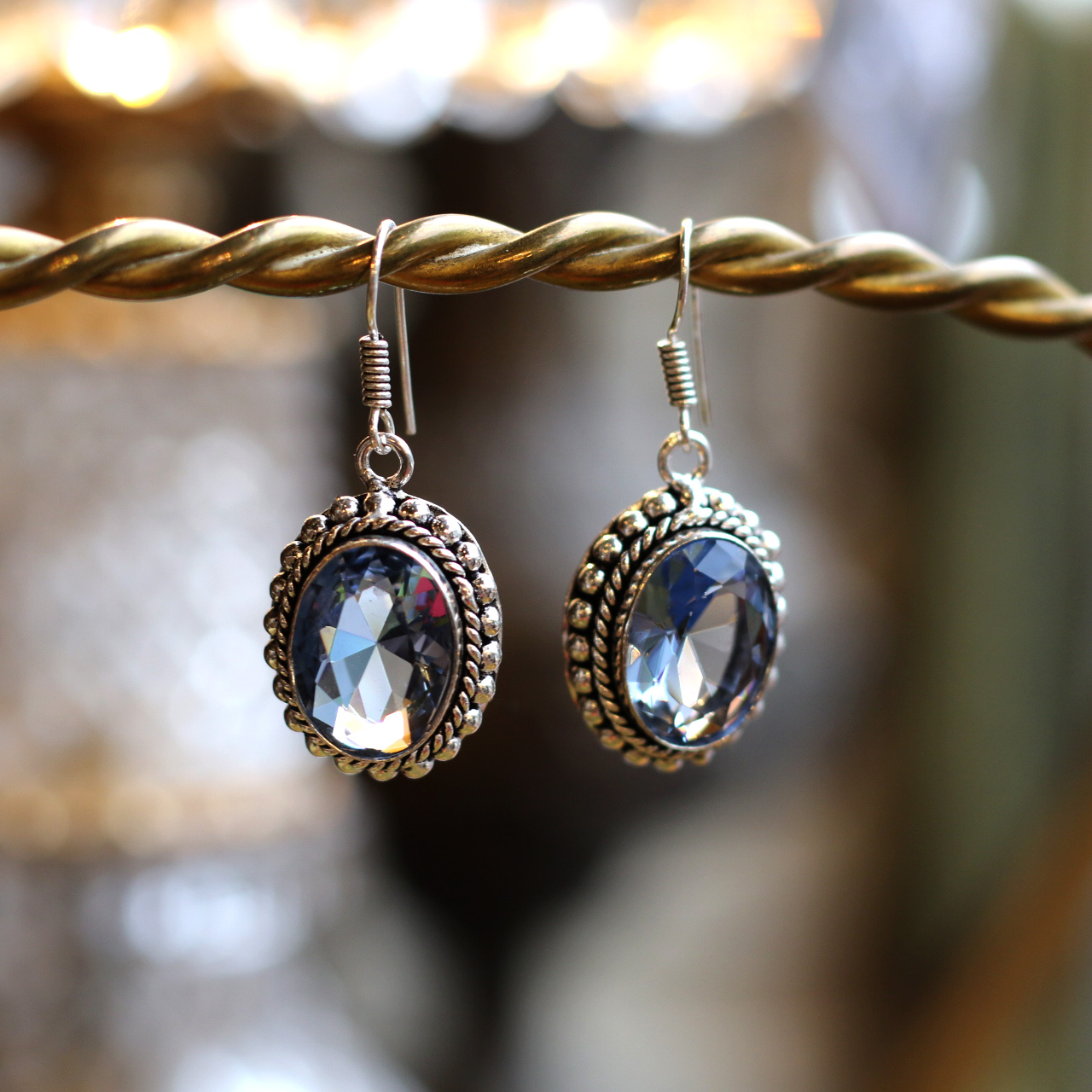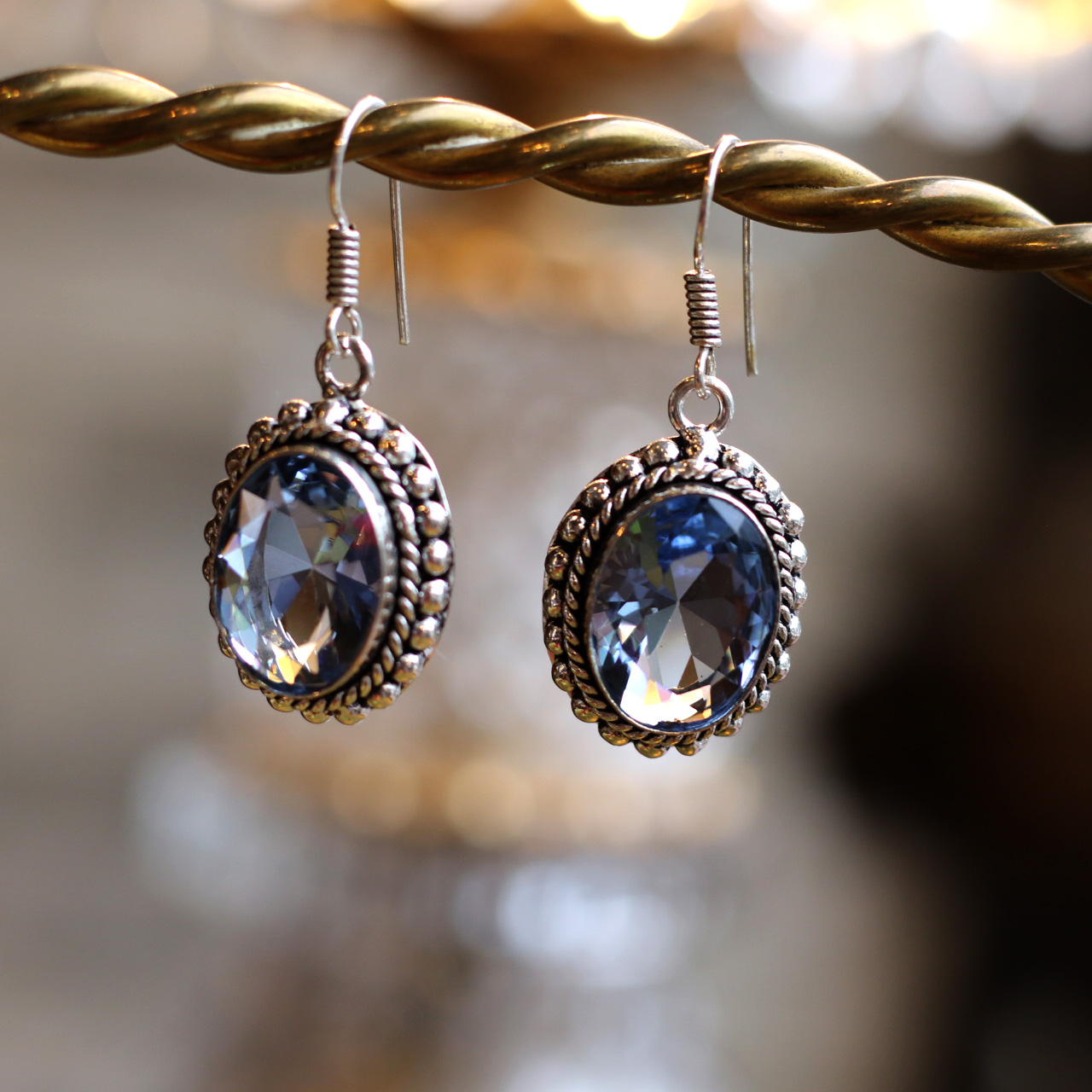 寶石周圍以925純銀打造雙層飾框,外層為顆粒浮雕紋,內層為麻花繩狀刻飾,展現出典型維多利亞時期銀工裝飾風格。吊鉤部分為簡約彈簧圈結構,配戴時輕盈舒適,亦易於搭配各類穿著。
