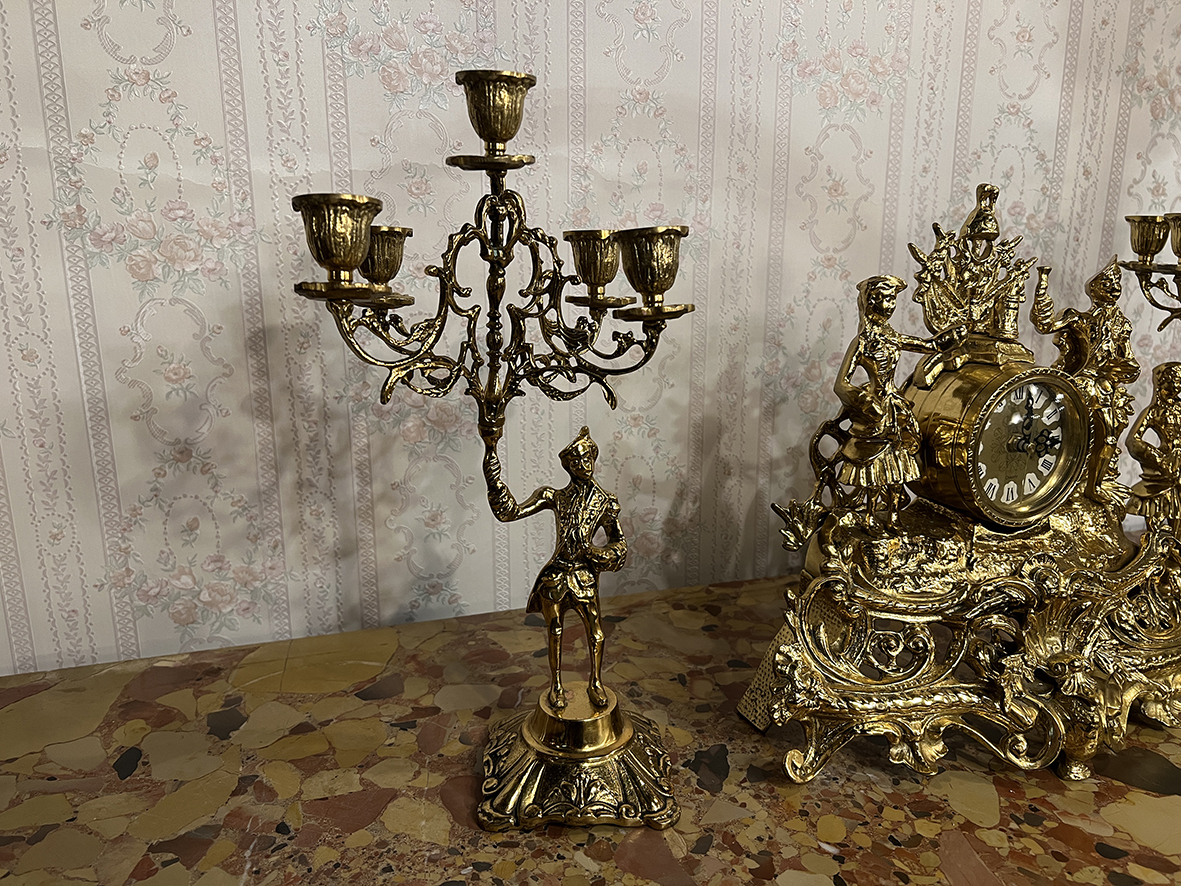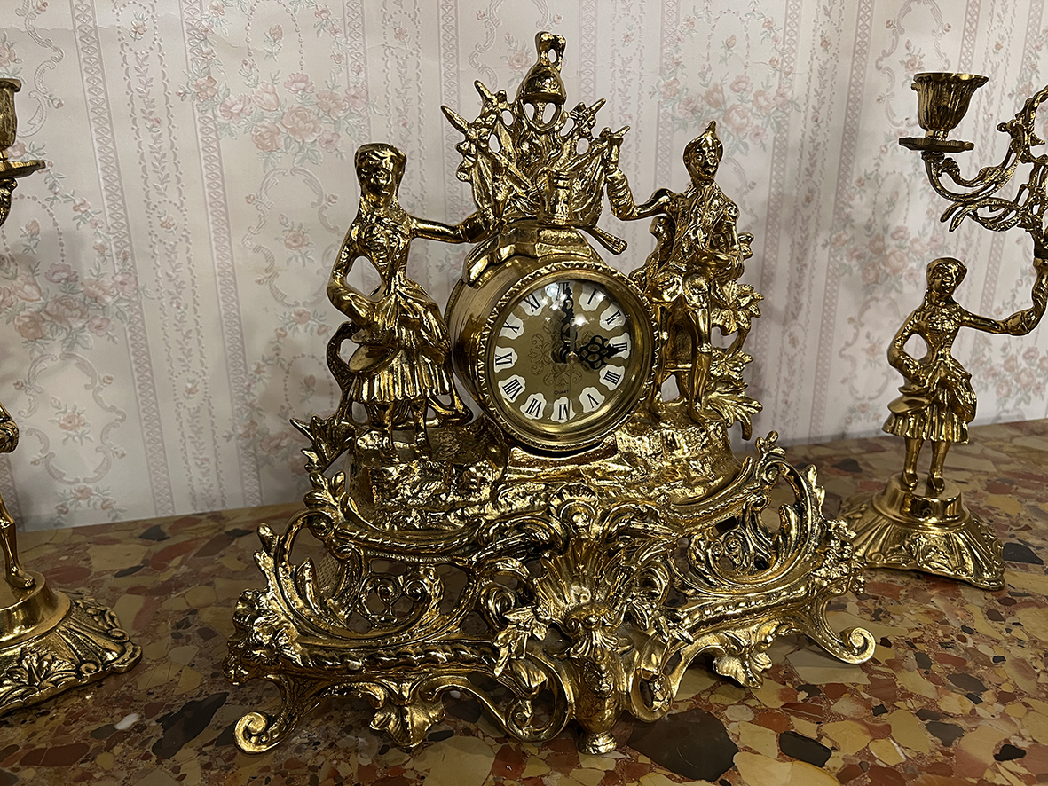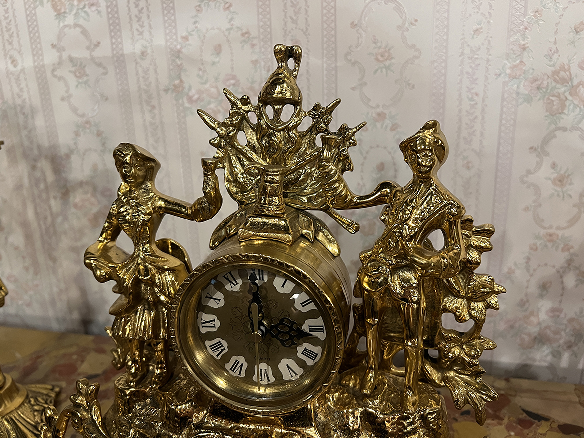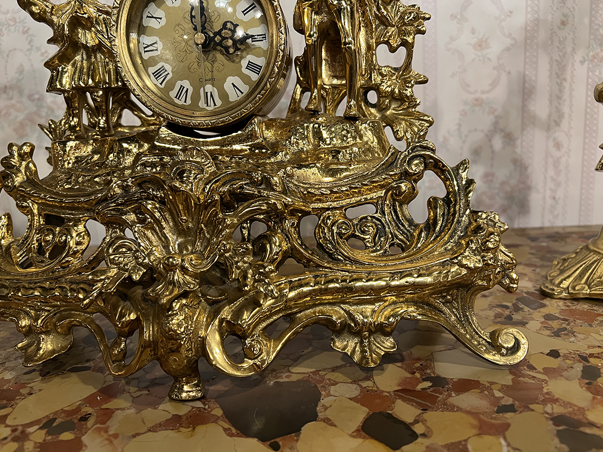 #法國十九世紀古董 #厚實黃銅座鐘 #巴洛克風格 #洛可可雕飾 #宮廷藝術 #歐洲古董鐘 #古董燭台組 #法式古典家飾 #FrenchAntiqueClock #BronzeCandelabra #BaroqueDecor #AntiqueMantelClock #SolidBrass #19thCenturyDecor #RococoStyle #AntiqueFrenchArt #EuropeanAntiques #HeritagePiece #CollectibleAntique #OldWorldCharm