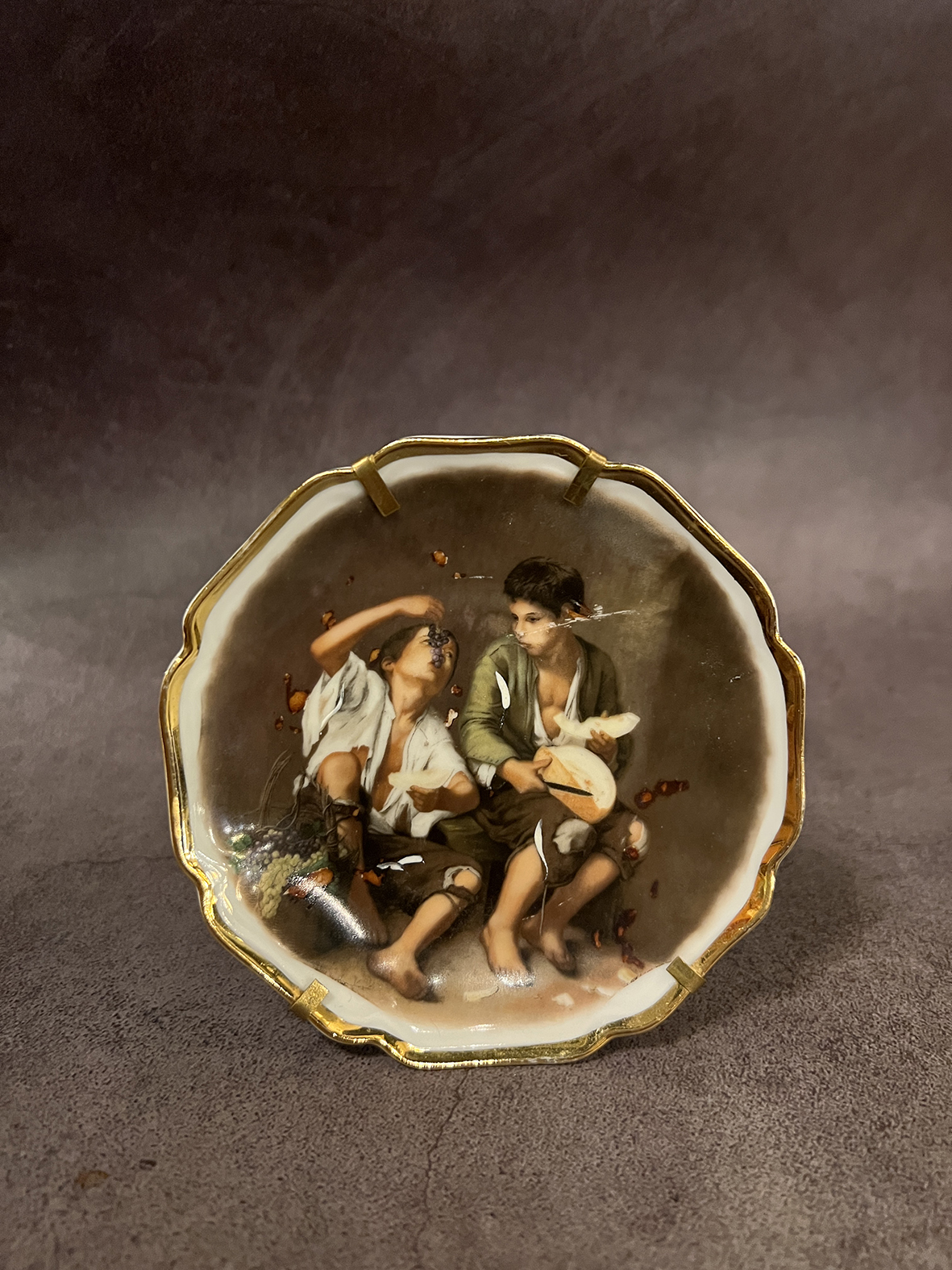 這件由 Limoges 工坊 製作的瓷飾品盤,西班牙巴洛克畫家 Bartolomé Esteban Murillo (1617–1682) 著名作品 The Beggar Boys 。