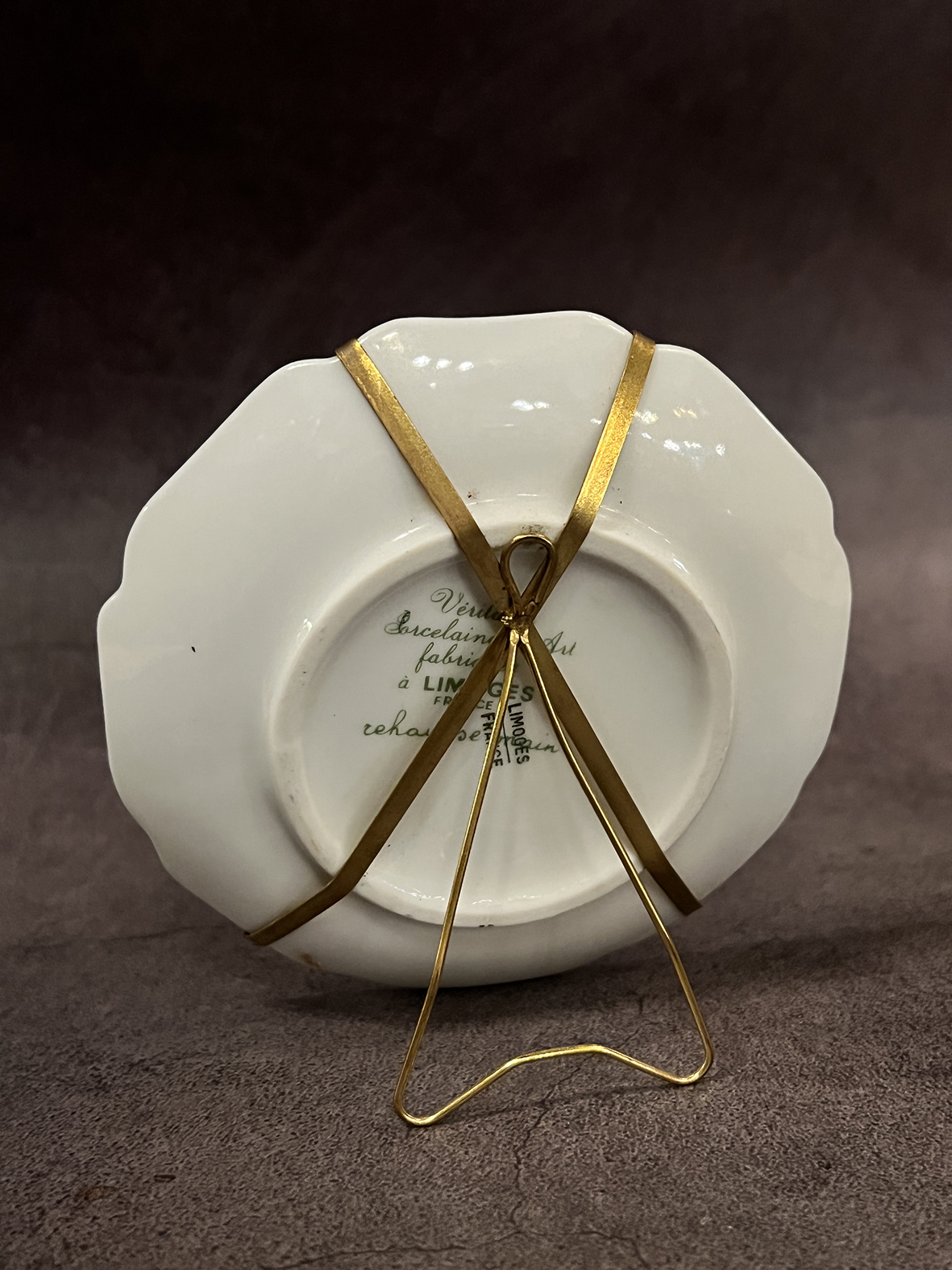 #法國古董 #Limoges #巴洛克藝術 #Murillo #瓷飾品盤 #藝術收藏 #古典掛盤 #歐洲古董 #壁掛盤 #黃銅盤架