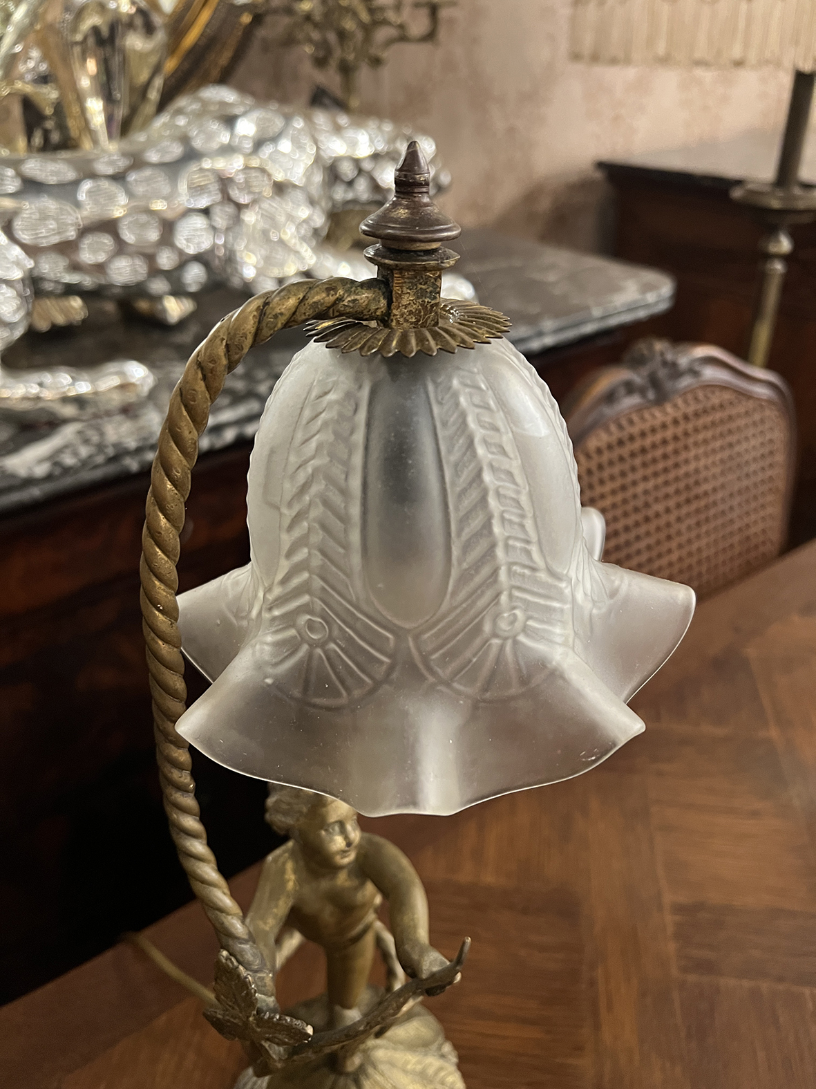#法國古董檯燈 #新藝術風格 #天使銅雕 #手工玻璃燈罩 #實心銅鑄 #歐洲古董燈 #浪漫光影 #法式家飾 #AntiqueLamp #ArtNouveau #BronzeSculptureLamp #FrenchAntique #FrostedGlassShade #CherubLamp #VintageLighting #EuropeanDecor #ClassicInterior #AntiqueLighting #FrenchHomeDecor #CollectibleAntiques