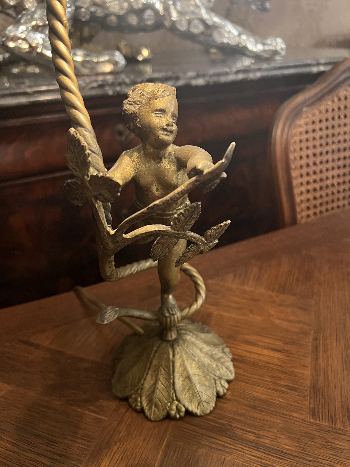 純手工實心銅雕鑄造:以鑄造法完成,表面手工打磨後呈現柔潤金古銅色澤;天使的神情細膩、肢體比例自然,展現 19 世紀雕塑家對人體曲線的精湛詮釋。