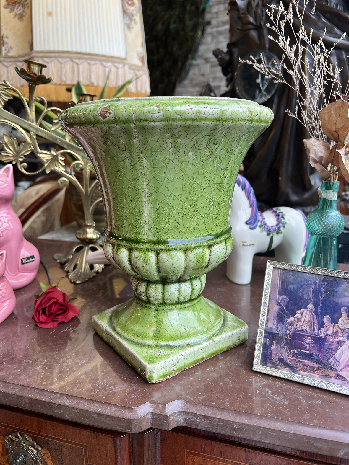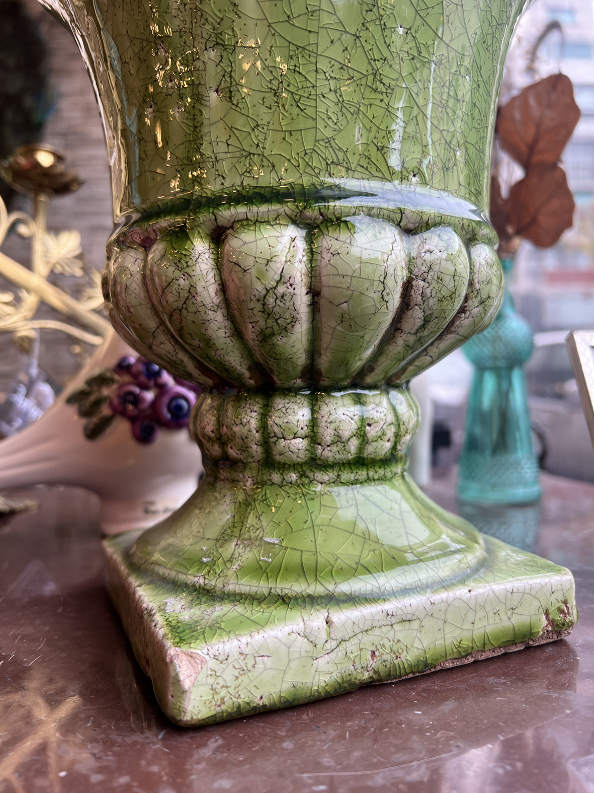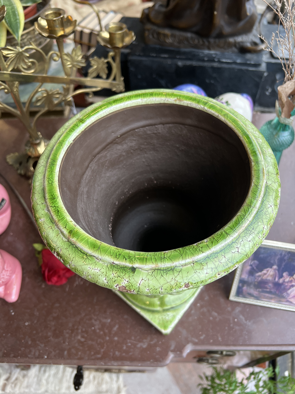 #FrenchAntique #CeramicUrn #GreenGlaze #TimelessObject #AntiqueDecor