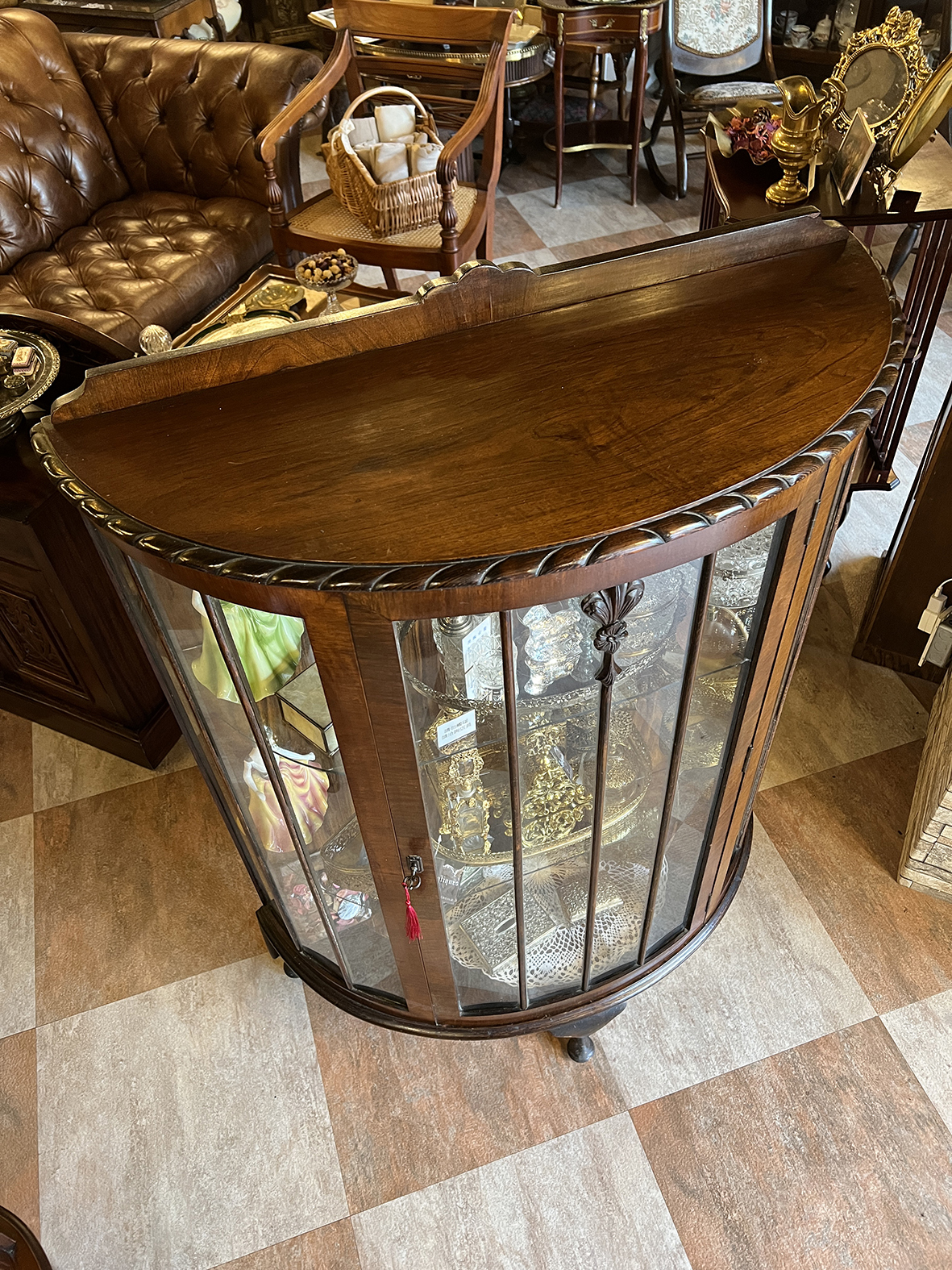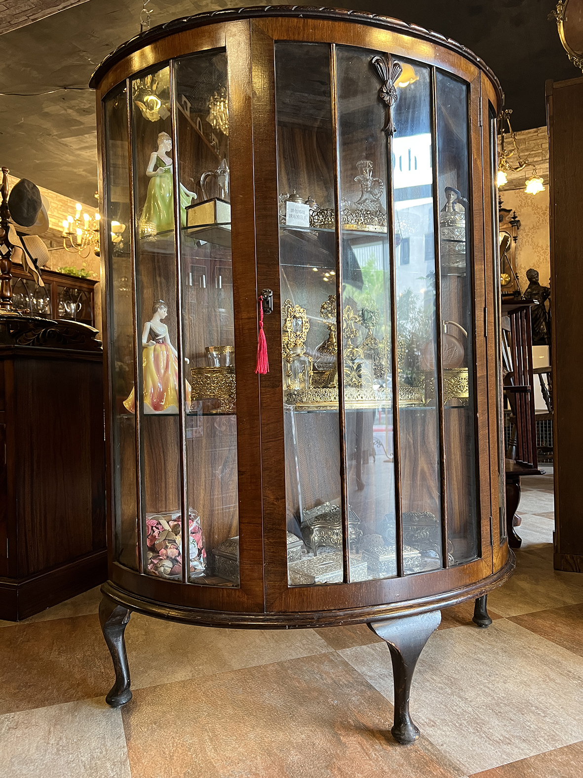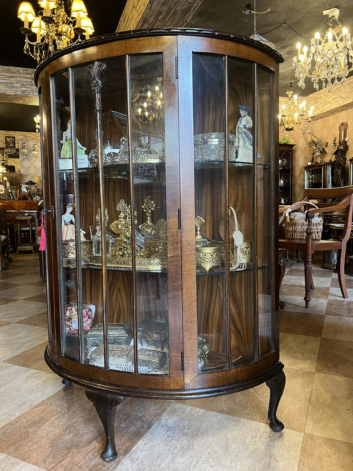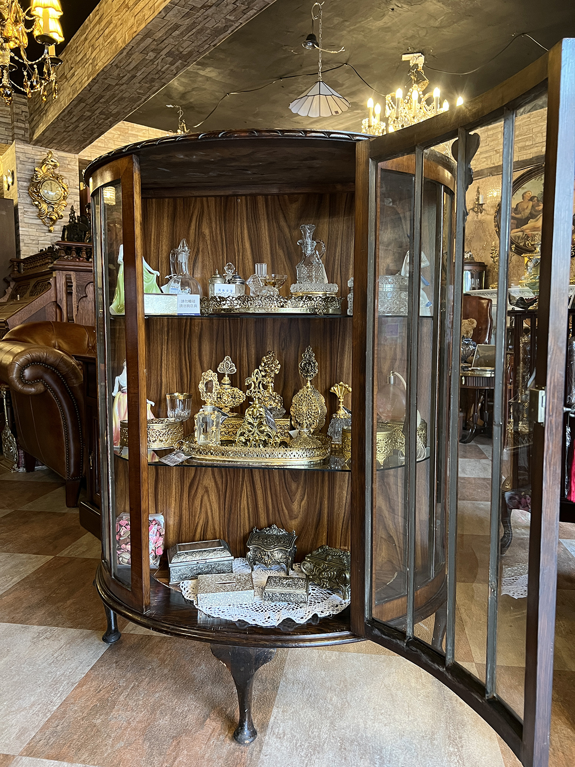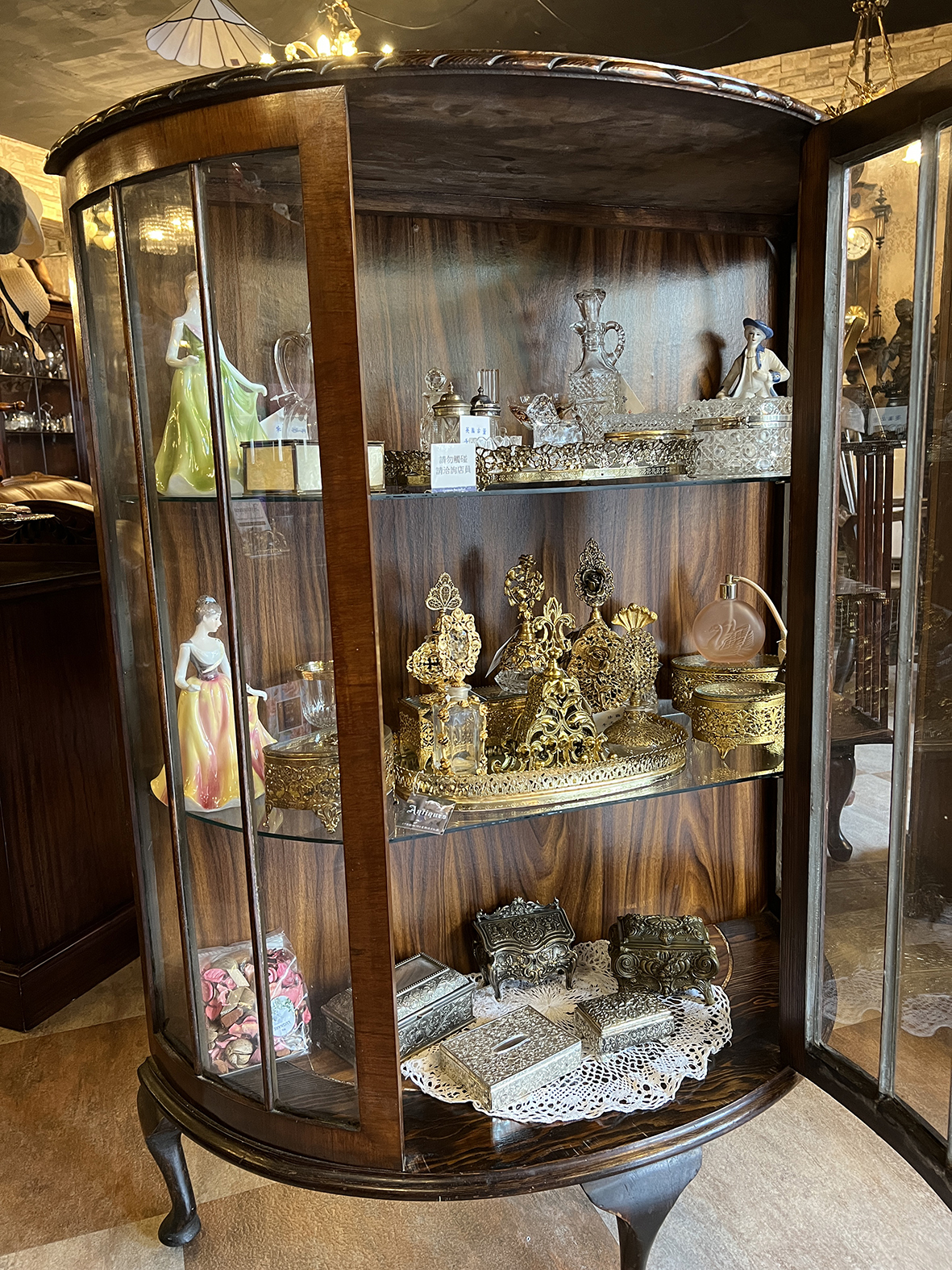 此類展示櫃當年多為上流社會家庭於客廳、書房或沙龍陳列珍藏之用,不僅展示生活品味,也象徵主人的文化修養與審美眼光。
