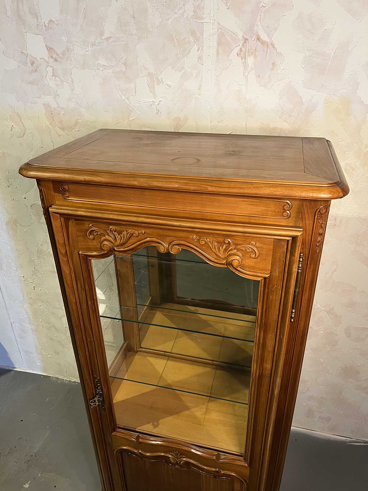 來自法國的洛可可風格古董展示櫃,承襲 Louis XV 時期流行的優雅曲線與精緻裝飾,通體以櫻桃木手工雕刻而成,木質色澤溫潤細膩,呈現出18世紀中期貴族居所中常見的華美風貌。