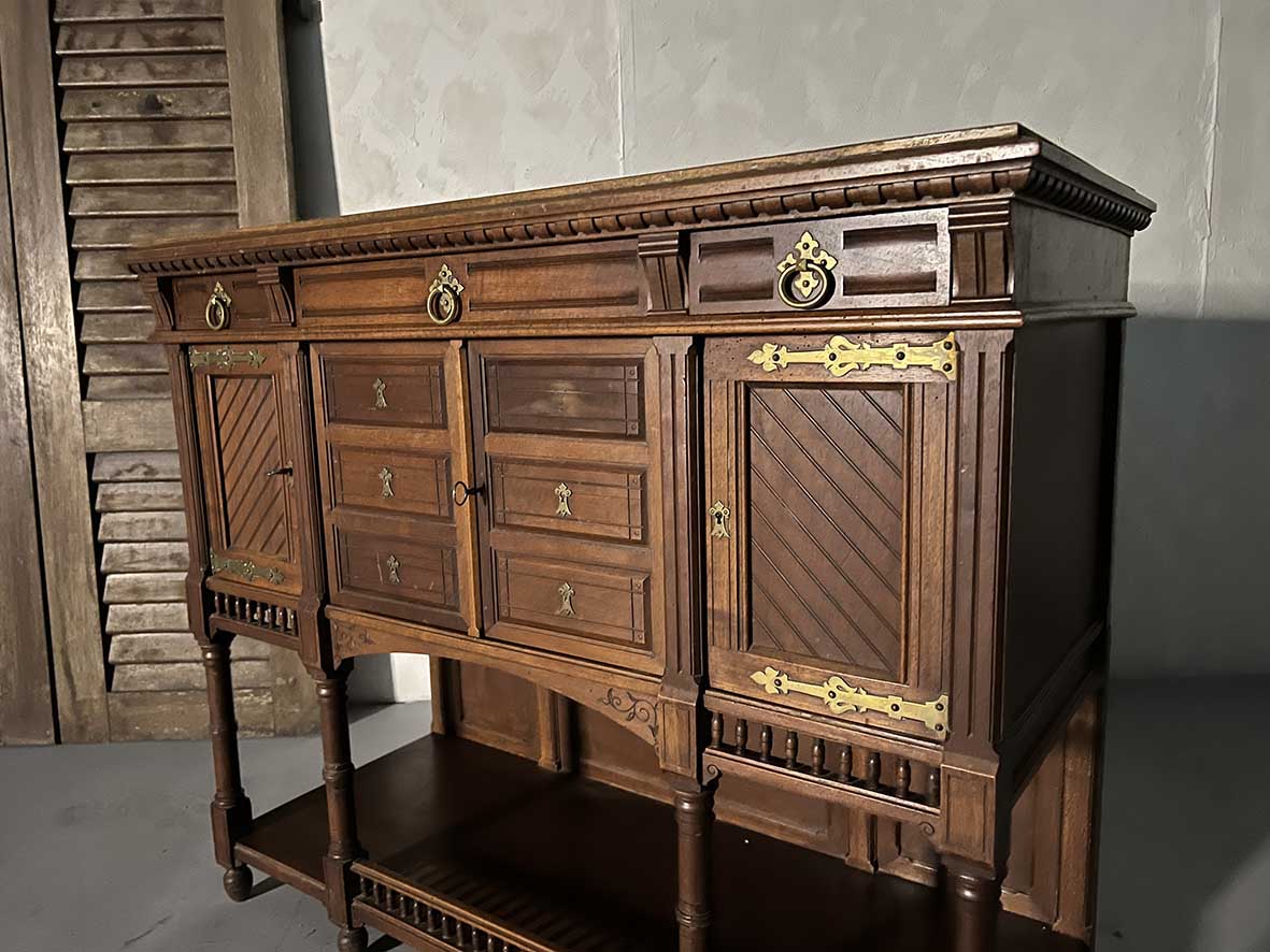 #FrenchAntique #OakSideboard #18thCenturyFurniture #LouisXVStyle #NapoleonIII #CarvedCraft #BrassFittings #EuropeanAntique #VintageCollectible #ClassicDecor