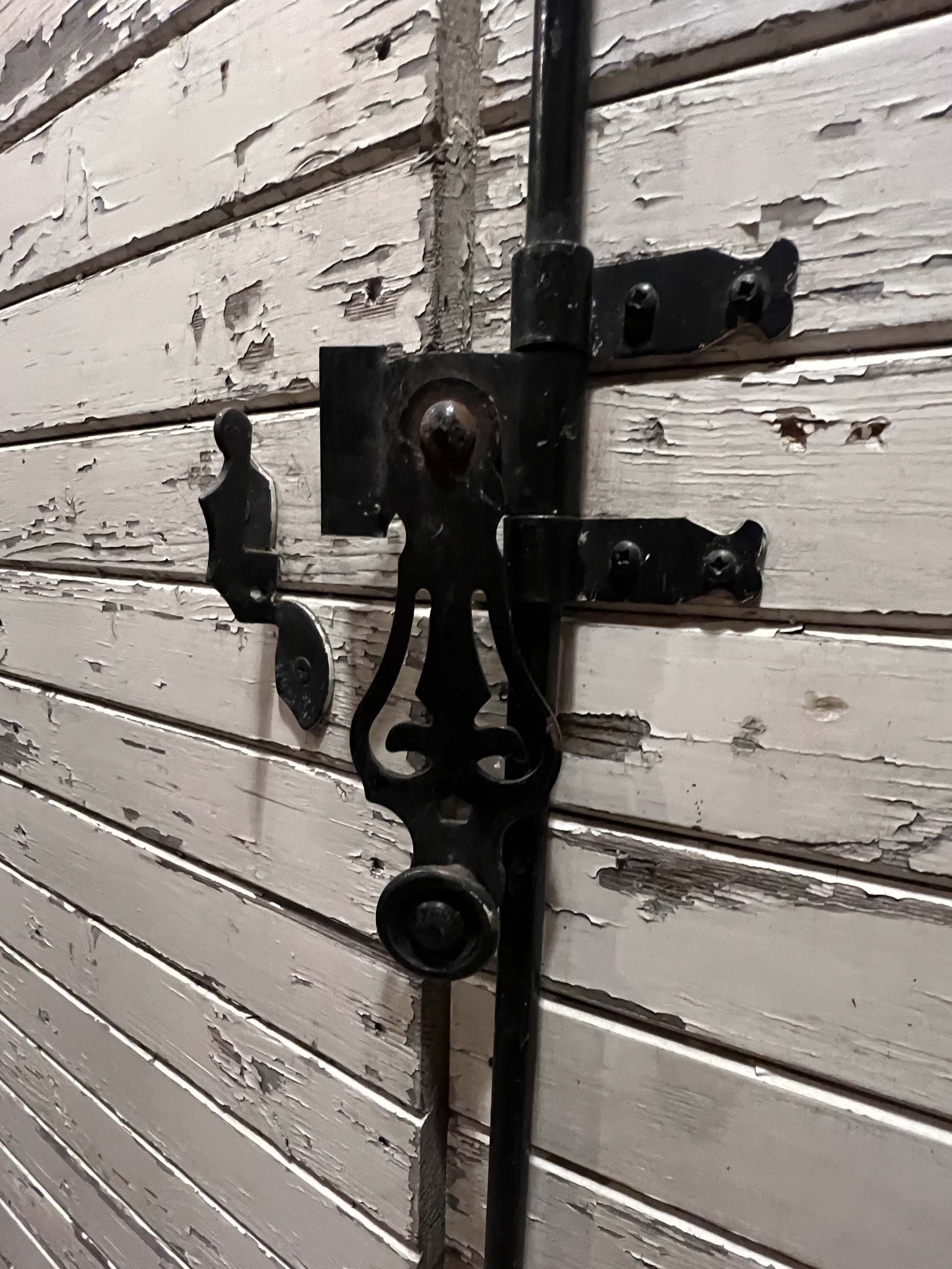 金屬構件:手工鍛造黑鐵門栓與鉸鍊,造型古樸帶有19世紀工藝風格,堅固耐用