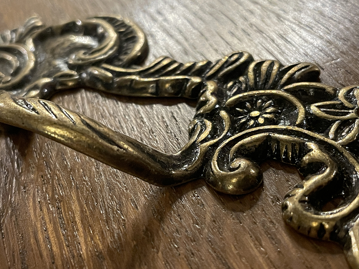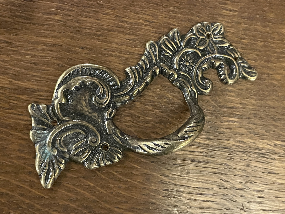 #法國古董 #黃銅手把 #巴洛克風格 #古董五金 #浮雕設計 #歐洲家具 #AntiqueBrass #BaroqueStyle #DrawerHandle #FrenchAntique #VintageHardware
